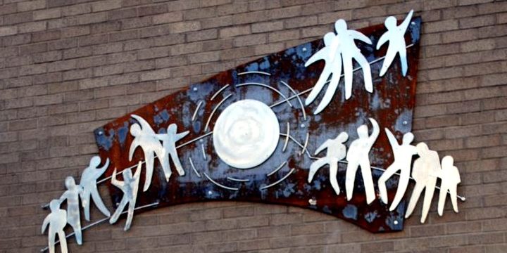 Das Kunstwerk entstand 2009 im Technik – Unterricht im Rahmen eines Praxisprojekts mit der Firma Metallbau Müller unter der Leitung von Fachlehrerin Helga Küchler.