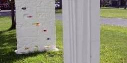 Bereits im Mai 2003 begannen die Arbeiten zu den Steinplastiken, die die Schülerinnen und Schüler der beiden M-Klassen zusammen mit dem Bildhauer Herbert Lankl gestalteten. In der ersten Plastik haben die Schüler versucht, verschiedene Lebenssituationen von Menschen, die sich in der Schule begegnen, darzustellen. Das Spannungsfeld der vielen unterschiedlichen Motive wird aufgelöst durch die gegenüber stehende zweite Plastik.