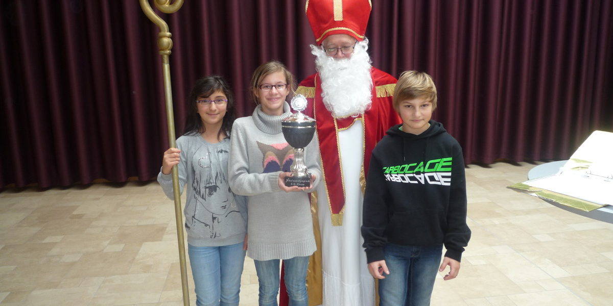 Jedes Jahr richtet die Mittelschule Waldsassen Anfang Dezember die Nikolausolympiade für die Schüler und Schülerinnen der Klassen 5 und 6 aus. Bewegungsintensive Stationen müssen von den Schülern gemeistert werden, bis der Sieger feststeht. In diesem Jahr sicherte sich die Klasse 6GTK den von Bürgermeister Bernd Sommer gestifteten großen Wanderpokal. Groß war die Freude der Schülerinnen und Schüler der fünften und sechsten Klassen über die zusätzlich angesetzten Sportstunden am Donnerstag. In der Turnhalle hatte Sportlehrerin Sonja Ermer hatte einen Geschicklichkeits-Parcours aufgebaut. Neben sportlicher Fitness waren bei den Übungen vor allem Teamgeist und Einsatzwillen gefragt. Aber daran mangelte es keinem der Teilnehmer. Als Punktrichter fungierten die Schüler der Klasse 8a. Mit großem Engagement und lautstark angefeuert von den Mitschülern und den Klassenlehrkräften wurde verbissen um jeden Punkt gekämpft. Nach dem Wettkampf trafen sich die Sportler in der Aula zur Siegerehrung. Der Nikolaus höchstpersönlich gab die Siegerklasse bekannt und überreichte unter großem Beifall den begehrten Wanderpokal an die Klassensprecher der Klasse 6GTK. Aber auch diejenigen, die nicht die ersten Plätze belegten, durften sich über ein kleines Nikolausgeschenk freuen.