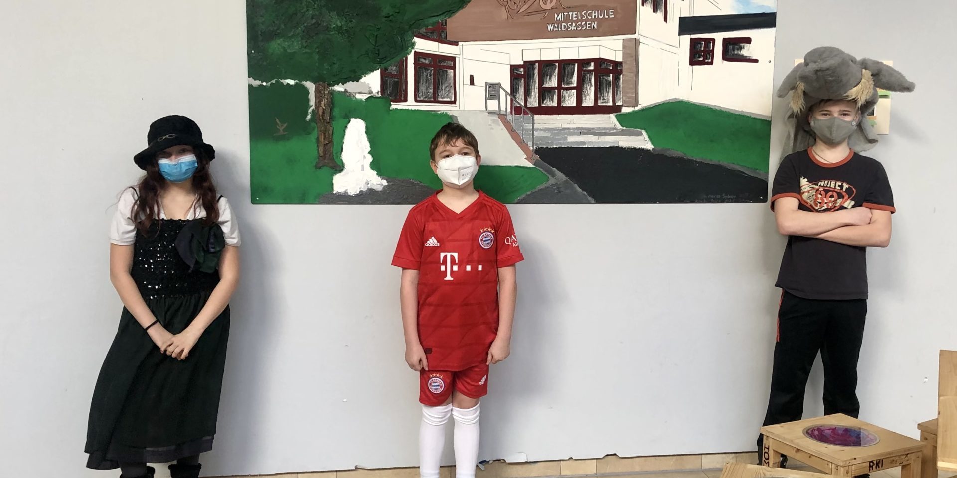 Ein bisschen Spaß muss sein! Unter Einhaltung der Hygieneregeln haben sich die Schüler*innen bei uns in der Notbetreuung so ein klitze-kleines bisschen maskiert. Die Kostüme sind wirklich sehr fantasievoll und toll geworden!!!