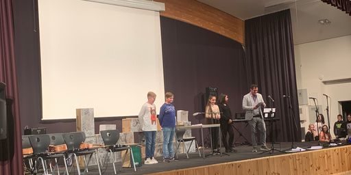 Neben der Theateraufführung präsentierten die Kinder der Bandklassen 6 GTK und 7 GTK unter der Leitung von Musikschullehrer Andreas Bauer sowie den Lehrkräften Felix Staufer und Benedikt Grüner dem begeisterten Publikum im Rahmen des Tages der Hausmusik verschiedene musikalische Beiträge.