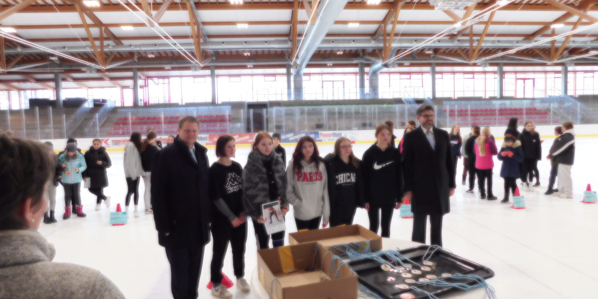 Mit drei Mannschaften nahm die Mittelschule Waldsassen in diesem Jahr beim Kreis- und Bezirksfinale Eisschnelllauf in der Mitterteicher Eishalle teil. Alle TeilnehmerInnen hatten einen technisch anspruchsvollen Hindernisparcour zu absolvieren, bei dem die EisläuferInnen ihre Geschicklichkeit auf Schlittschuhen beim Übersetzen, Slalom- und Rückwärtsfahren bei schnellstmöglichem Tempo unter Beweis stellen mussten. Beim zweiten Teil des Wettkampfes waren zwei Runden im Stadion in möglichst kurzer Zeit zurückzulegen. In äußerst engen Wettkämpfen entschieden letztlich oft nur wenige Sekunden über die Platzierungen. Unsere Waldsassener Mannschaften gingen hochmotiviert und konzentriert in die Läufe und belegten nach tollen Leistungen dabei einmal den ersten (Ju III) und zweimal den zweiten Platz (Mä III, Mä IV) auf Kreisebene sowie jeweils einmal den zweiten (Ju III), dritten (Mä IV) und vierten (Mä III) Platz auf Bezirksebene. Herzlichen Glückwünsch an alle TeilnehmerInnen!