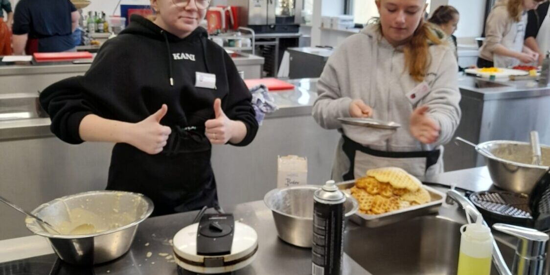 Die Klasse 8 GTK verbrachte einen Vormittag in der Berufschule Wiesau. Die Gruppe Soziales durfte in der Wäscherei, im Service und in der Küche verschiedene Tätigkeiten unter Anleitung ausüben.