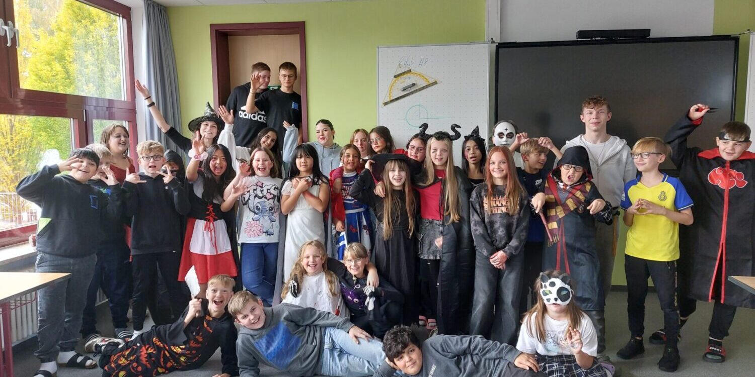 Am Mittwoch vor den Herbstferien fand zum zweiten Mal eine Halloween-Party für Fünftklässler statt, die von den Wertebotschaftern und Frau Schlicht organisiert und durchgeführt wurde. Die Mädchen und Jungen wurden in drei Gruppen aufgeteilt. Die erste Gruppe spielte das spannende Werwolf-Spiel, bei dem es darum ging, die Identität der Werwölfe zu entlarven. Die zweite Gruppe nahm an einer aufregenden Schnitzeljagd rund ums Schulgebäude teil, bei der sie Hinweise sammelten, um zum Schluss zum „Schatz“ zu gelangen. Jeweils drei Wertebotschafter fungierten dabei als „Unterstützer“. Die dritte Gruppe schaute zwei Folgen „Mr. Bean“ an, was für viele Lacher sorgte. In dieser Zeit konnten die Teilnehmer die Muffins essen, welche die Wertebotschafter extra für sie gebacken hatten. Danach wurden die Gruppen getauscht, so dass jedes Team alle Stationen durchlaufen konnte. Natürlich durfte auch eine Kostümprämierung nicht fehlen. Die Jungen und Mädchen machten es der Jury besonders schwer, da es sehr kreative Kostüme und gruselige Make-Ups gab. Für die drei besten Verkleidungen gab es Preise, über die sich die Kinder sehr freuten. Platz eins ging an Mia, Platz zwei konnte sich Lhinn sichern und auf Platz drei landete Arina. Um 15:30 Uhr war der „Spuk“ dann leider schon wieder vorbei.