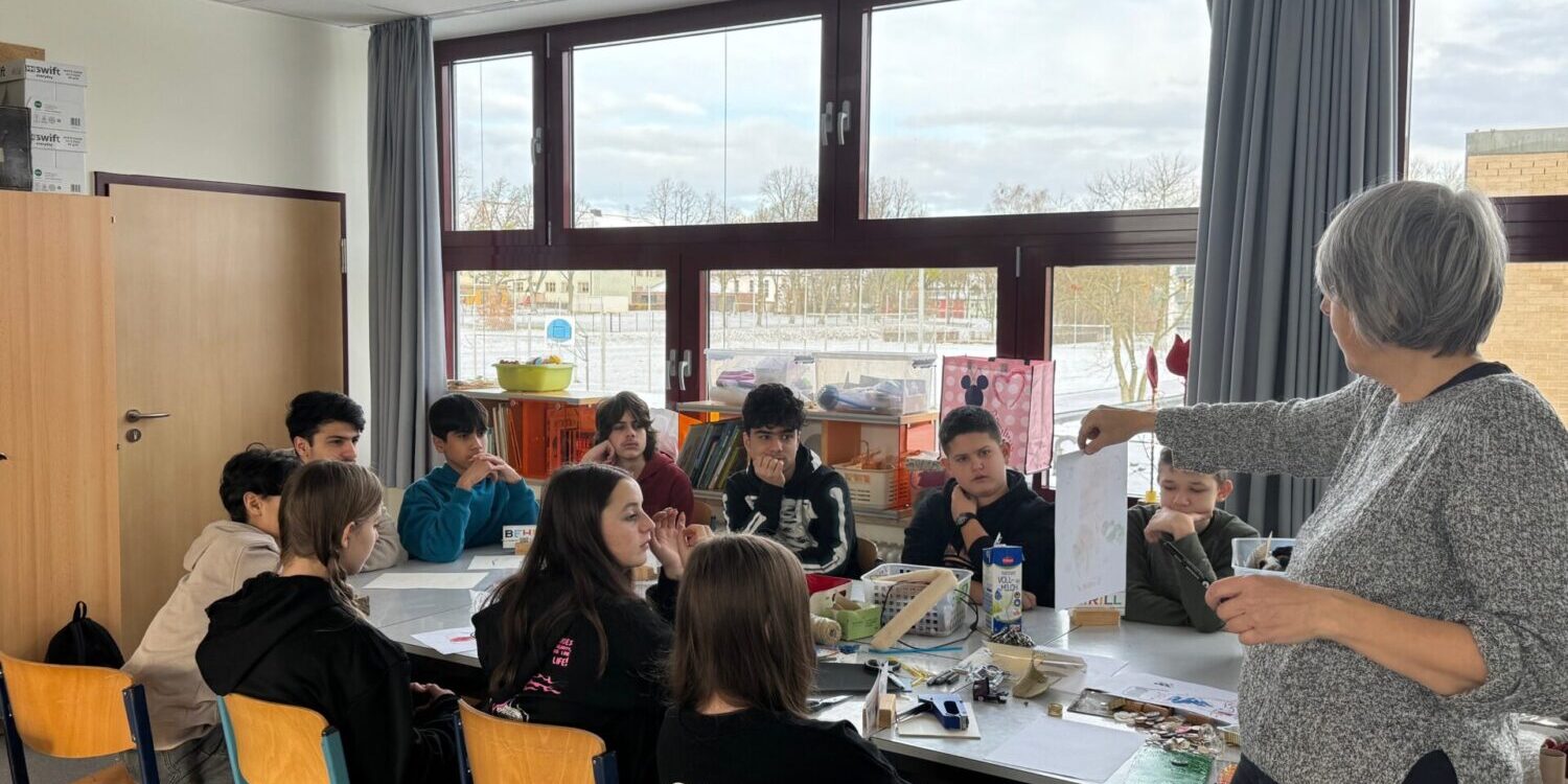 Am Freitag, den 22. November 2024, fanden an unserer Schule zwei spannende Kunstworkshops statt, die kreative Impulse setzten und den Schülerinnen und Schülern der Deutschklasse die Möglichkeit boten, sich künstlerisch auszuprobieren. Unter der Leitung von Irene Fritz, einer engagierten Kunstpädagogin von der Kulturwerkstatt Kalmreuth und Udo Binder, einem erfahrenen Künstler, entstanden beeindruckende Werke in den Bereichen „Kopfobjekte“ und „Materialdrucke“. Im Workshop „Kopfobjekte“ arbeiteten die Teilnehmerinnen und Teilnehmer an plastischen Kunstwerken. Mit einer Vielzahl von Materialien wie Kronkorken, Holzresten, Elektronikteilen sowie sonstigen alltäglichen Kleinkram wurden kreative Gesichter auf Holz genagelt sowie geklebt. Udo Binder unterstützte die Jugendlichen dabei, ihrer Fantasie freien Lauf zu lassen und mutig neue Formen und Wege auszuprobieren. Parallel dazu leitete Irene Fritz den Workshop „Materialdrucke“. Hier wurde mit verschiedenen Texturen und Drucktechniken experimentiert, um einzigartige Kunstwerke auf Papier und Holz zu schaffen. Die Schülerinnen und Schüler verwendeten auch hier alltägliche Materialien wie Korken, Stoffreste und verschiedene Verpackungen, um spannende Muster und Strukturen zu drucken. Die Workshops boten nicht nur eine spannende Abwechslung vom Schulalltag, sondern förderten auch die Experimentierfreude und das ästhetische Empfinden der Jugendlichen. Die dabei entstandenen Kunstwerke werden bei unsererem Kulturweihnachtsmarkt in der Aula ausgestellt, um einen Einblick in die kreativen Prozesse und Ergebnisse zu geben.