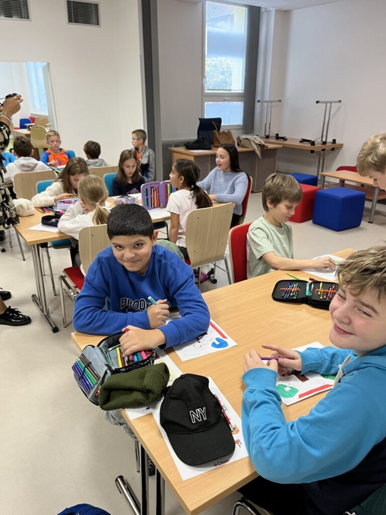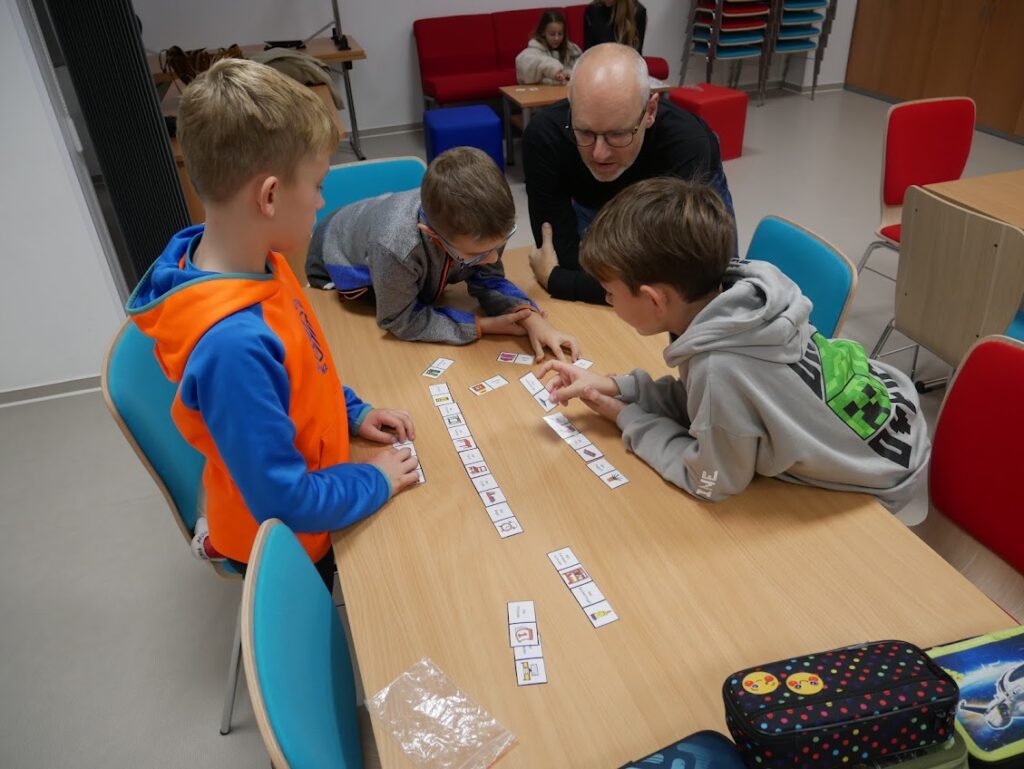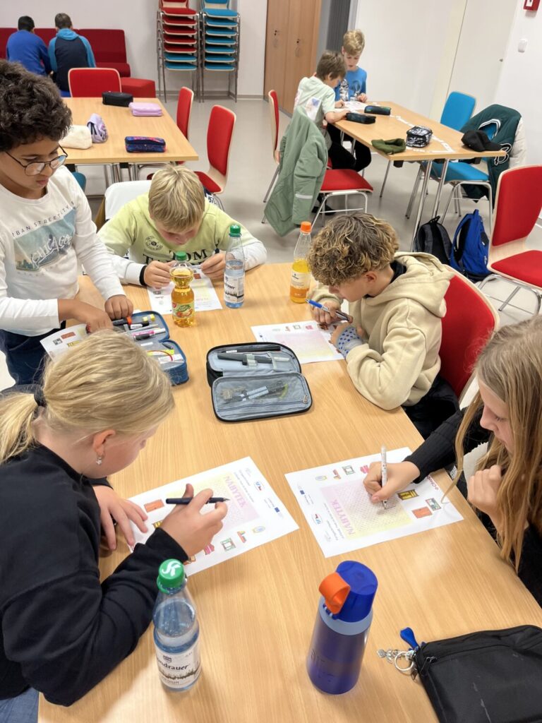 Nach der gemeinsamen Arbeit überprüften alle gegenseitig ihre Ergebnisse und wiederholten einfache Sätze und neue Vokabeln. Dabei jeweils fleißig halfen die „kleinen Muttersprachler“, was für beide Seiten eine äußerst wertvolle Erfahrung war!