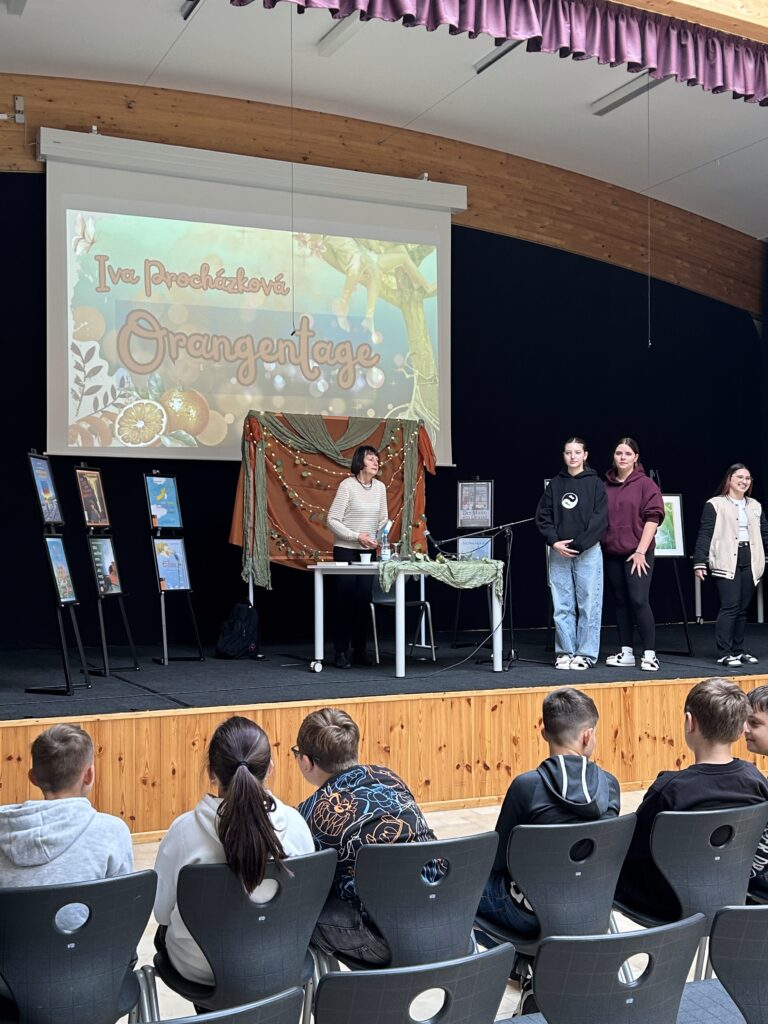 Ein besonderer Tag für die Schüler der Tschechisch-AG: Am vergangenen Dienstag besuchte die bekannte tschechische Autorin Iva Procházková im Rahmen des INTERREG-Programms „Sprache baut Brücken“ die Mittelschule Waldsassen und las aus ihrem preisgekrönten Jugendroman „Orangentage“. Zu diesem Anlass waren auch die Schüler unserer tschechischen Partnerschule für die Lesung eingeladen, die der Autorin ebenfalls begeistert lauschten.