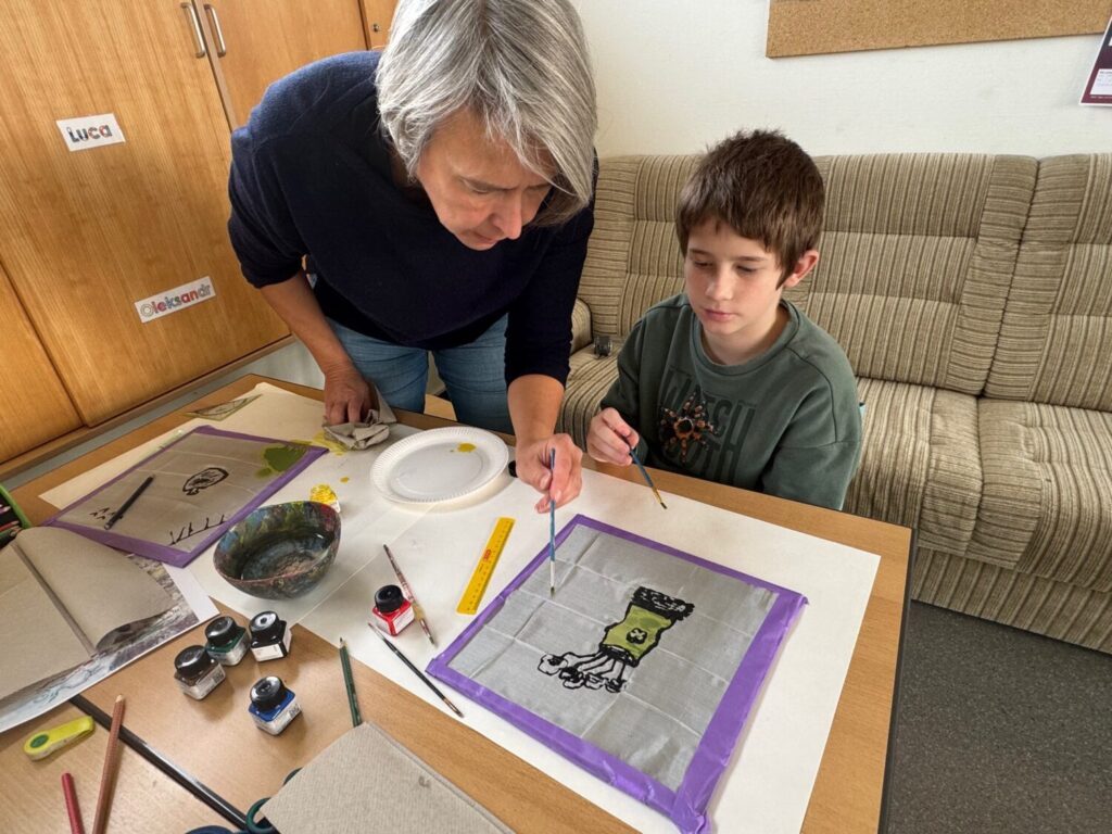 Mit viel Fantasie, Freude und Experimentierlust entstanden im Verlauf des Workshops bunte, individuelle Kunstwerke auf feiner Seide. Die Klasse konnte nicht nur neue künstlerische Ausdrucksformen ausprobieren, sondern auch erleben, wie entspannend und inspirierend kreatives Arbeiten sein kann.