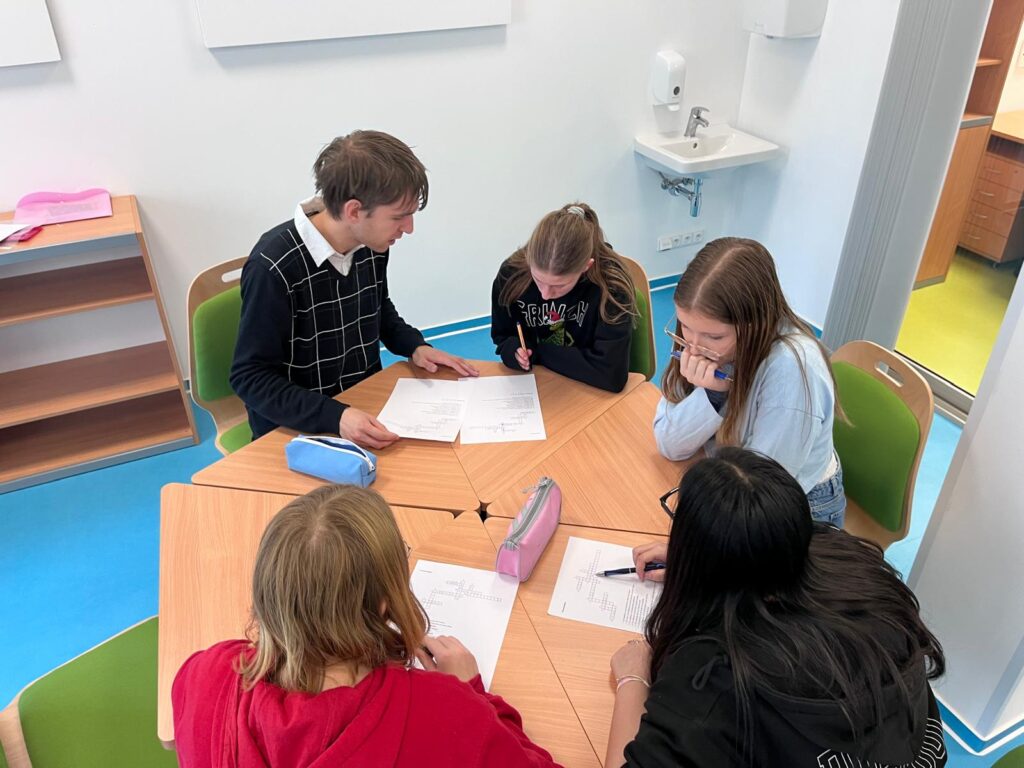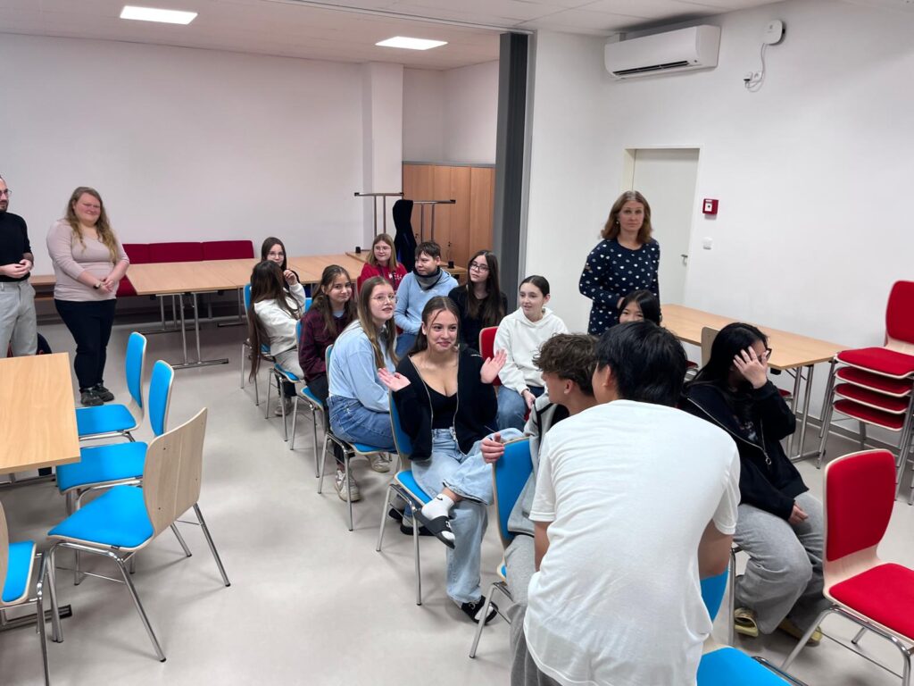 Die gemischten Gruppen arbeiteten ohne Scheu zusammen, unterstützten sich gegenseitig bei den Aufgaben und nutzten beide Sprachen ganz selbstverständlich. Das Treffen war nicht nur sprachlich bereichernd, sondern trug auch zur Stärkung der freundschaftlichen Beziehungen zwischen beiden Schulen bei und motivierte die Schülerinnen und Schüler zu weiterem gemeinsamen Lernen.
