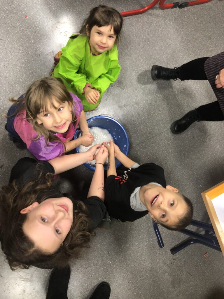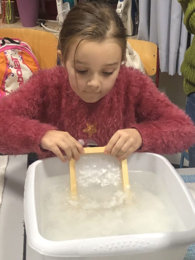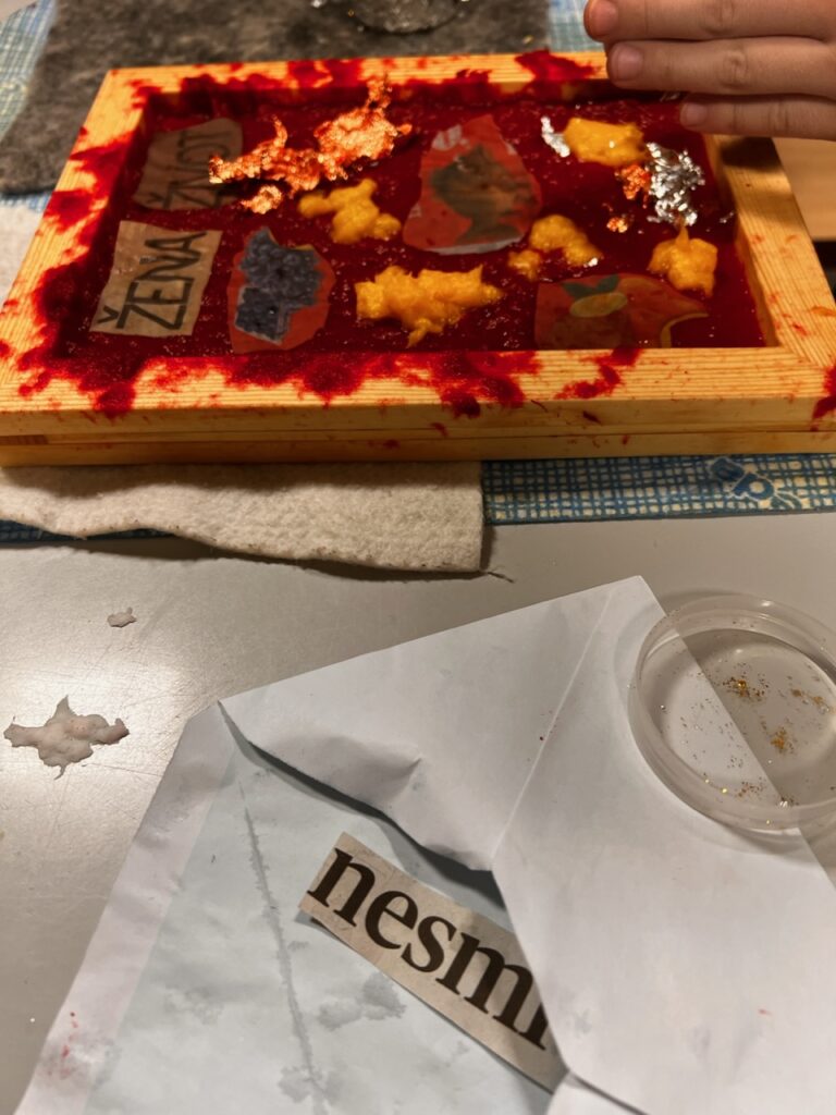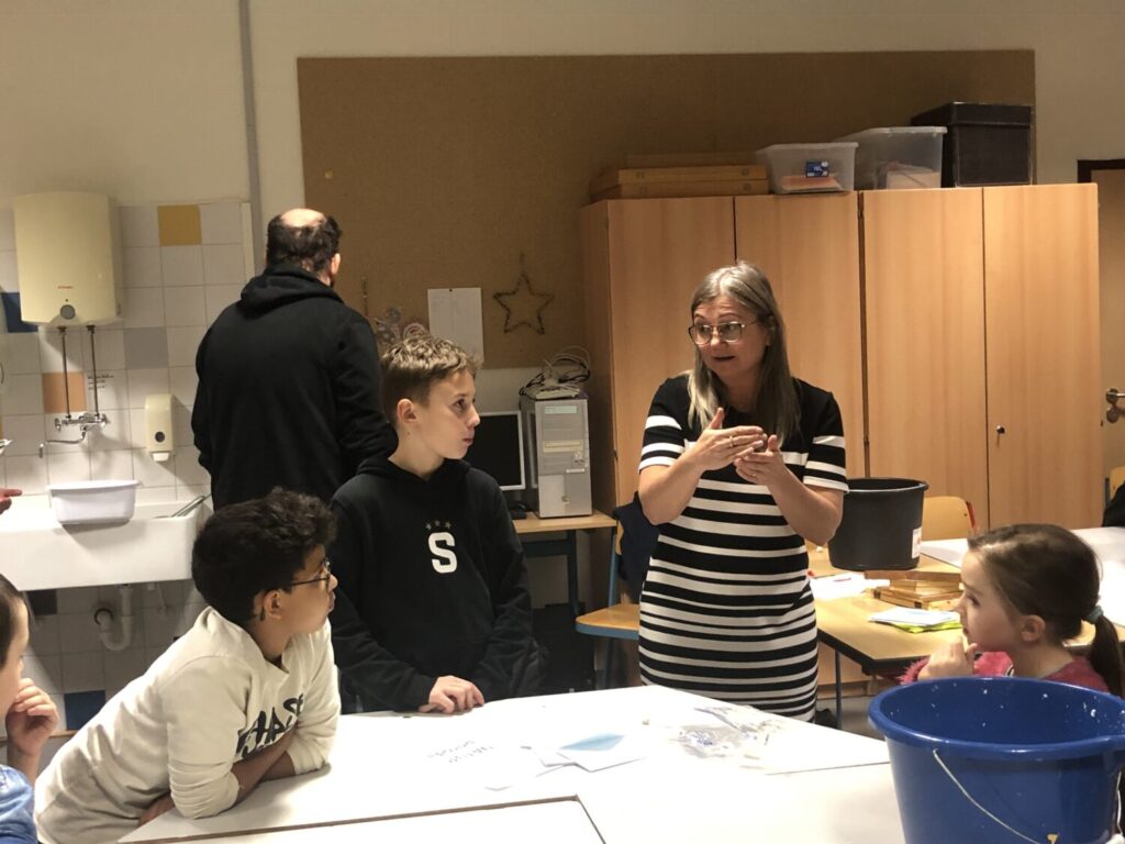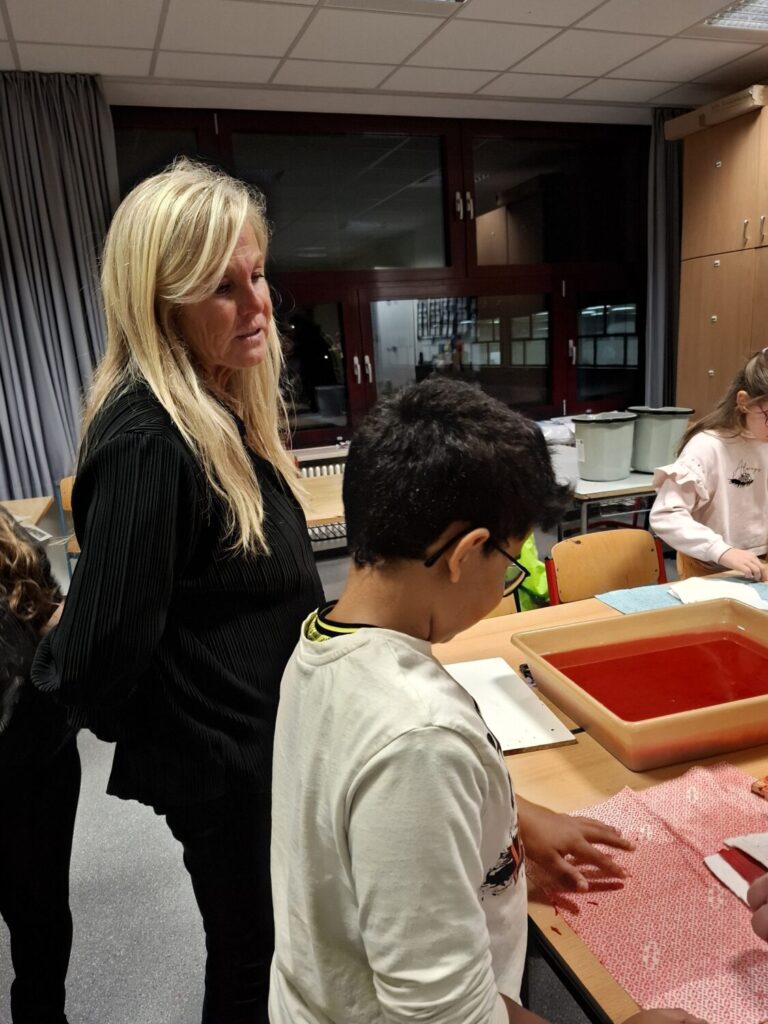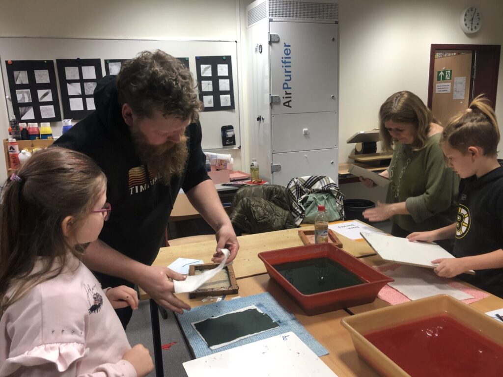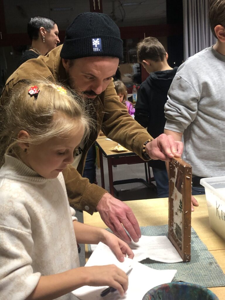 Beim Schöpfen von ganz individuellen Kunstpapieren erlebte die interkulturelle Gruppe, wie sich einzelne kleine Fasern neu zu einem spannenden Ganzen verbinden – und damit sinnbildlich auch ein gemeinsames Zeichen von Zusammenhalt. Mit der Kunstschule entdeckten die Kinder mit ihren Eltern viele Möglichkeiten, das Papiergautschen kreativ zu begleiten. Verschiedene pflanzliche Rohstoffe, aber auch eigene Experimente mit Stoffen aus der Natur und sogar der Küche, standen dabei zur Verfügung und wurden eifrig genutzt. Zeitungen aus beiden Ländern fanden Verwendung, um bilinguale Botschaften in die Papierobjekte einzubauen und poetische Collagen zu gestalten.