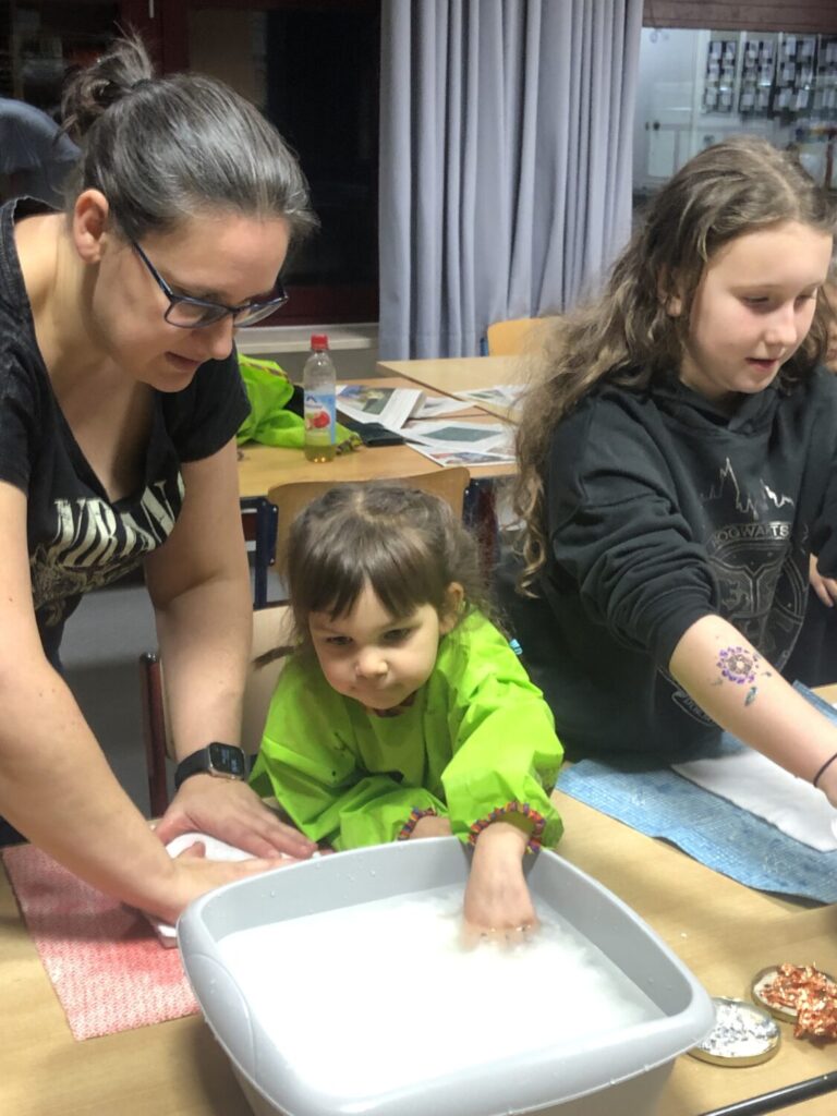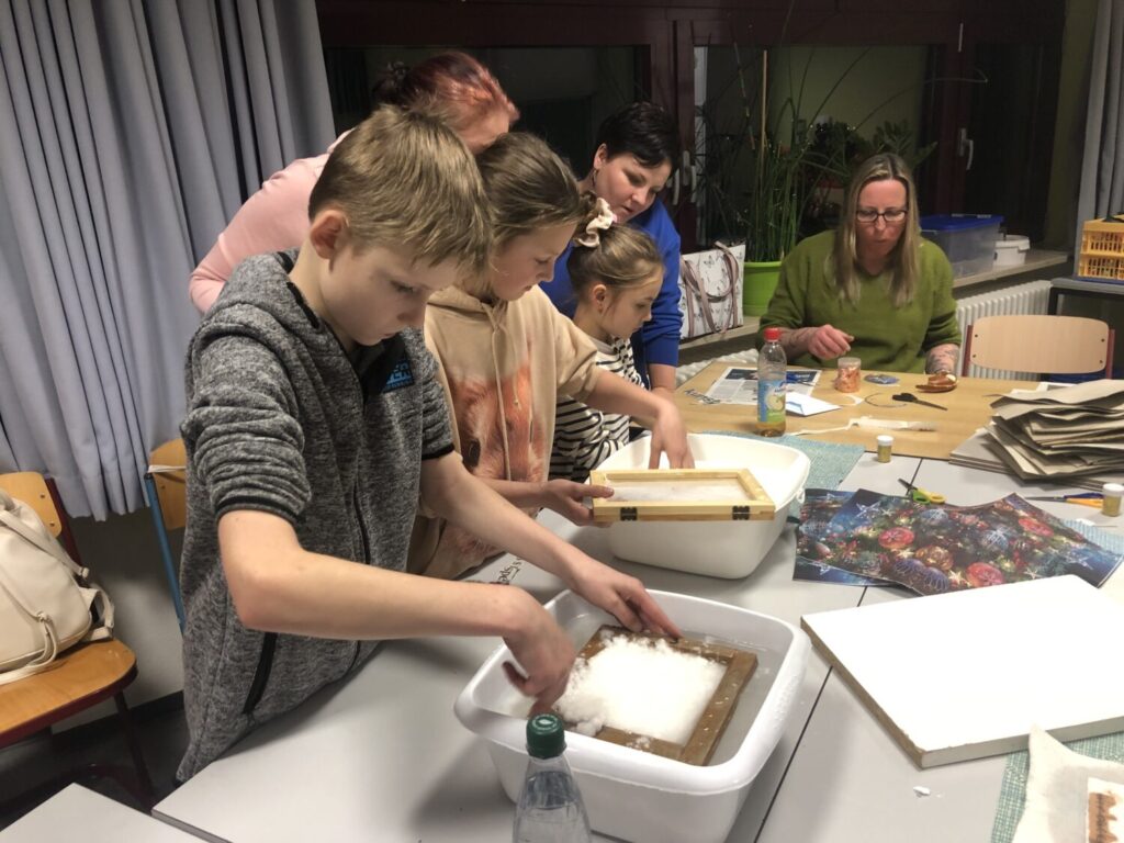 Der deutsch-tschechische Kulturabend in Form einer Eltern-Kind Akademie mit der Kunst- und Kulturwerkstatt Kalmreuth war für unsere beiden Partnerschulen, die Mittelschule Waldsassen und die 6.základní škola Cheb ein voller Erfolg! Knapp 50 begeisterte Teilnehmerinnen und Teilnehmer sowie die stellvertretende Schulleiterin Bohuslava Hlavničková und Lehrer Max Teubner konnte die Schulleitung in der Waldsassener Schulaula begrüßen. Bestens künstlerisch angeleitet wurden die gemischten Eltern-Kind-Teams von Irene Fritz, der Leiterin der Jungendkunstschule und ihren Mitarbeitern.