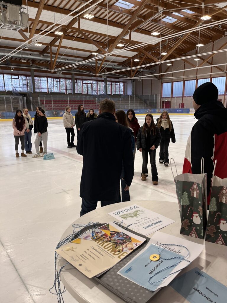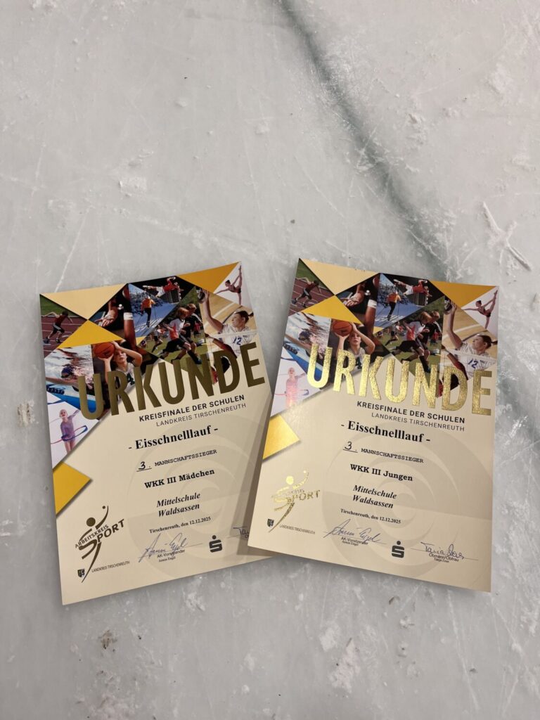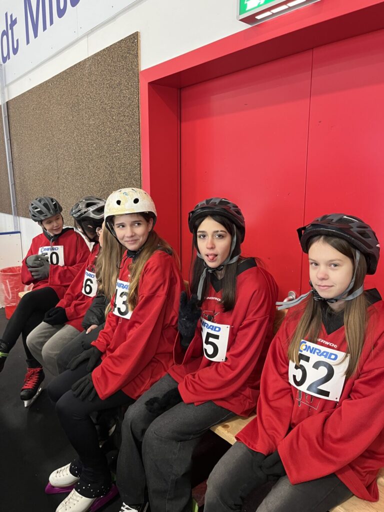 Am Freitag, 12.12.2025 fand das Kreis- und Bezirksfinale Eisschnelllauf in der Mitterteicher Eishalle statt, bei dem auch die Mittelschule Waldsassen wieder mit zwei Mannschaften an den Start gehen konnte. Die Schülerinnen und Schüler der Klassen 6 bis 9 zeigten vollen Einsatz bei der Bewältigung des Hindernisparcours sowie der Stadionrunden. Nach sehr spannenden Wettkämpfen erreichten unsere Mannschaften Jungen III auf Bezirksebene den 5. Platz (den 3. Platz auf Kreisebene) und die Mädchen III den 4. Platz (den 3. Platz auf Kreisebene). Herzlichen Glückwunsch an alle Teilnehmerinnen und Teilnehmer!