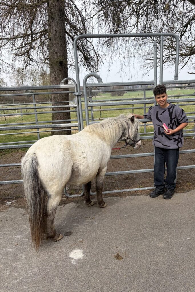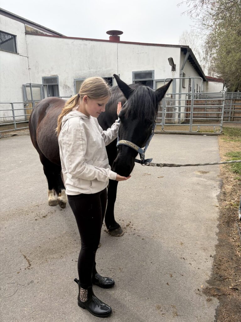 Der „Reitclub 2“ der Mittelschule Waldsassen durfte gestern die Schulpferde aus dem Reitverein Tirschenreuth Samson, Marshmallow und Shanaya kennenlernen. Gestartet wurde zunächst mit einem Verwöhnprogramm für die sanften Vierbeiner, bei dem richtige Fell- und Hufpflege auf dem Programm standen. Basics im Umgang mit Pferden und auch grundlegende Fachbegriffe waren Lerninhalte der Unterrichtseinheit. Im Anschluss unternahm unsere pferdebegeisterte Gruppe erste geführte Runden auf dem Gelände des Reitvereins, bei dem alle noch einmal größeres Vertrauen zueinander aufbauen konnten. Zum Ende der ersten Stunde durften die drei Schulpferde auf die Weide geführt und abgehalftert werden, damit sie zurück zu ihrer Herde laufen konnten. Die Vorfreude auf die nächste Stunde mit den neuen vierbeinigen Freunden ist jetzt schon riesengroß!
