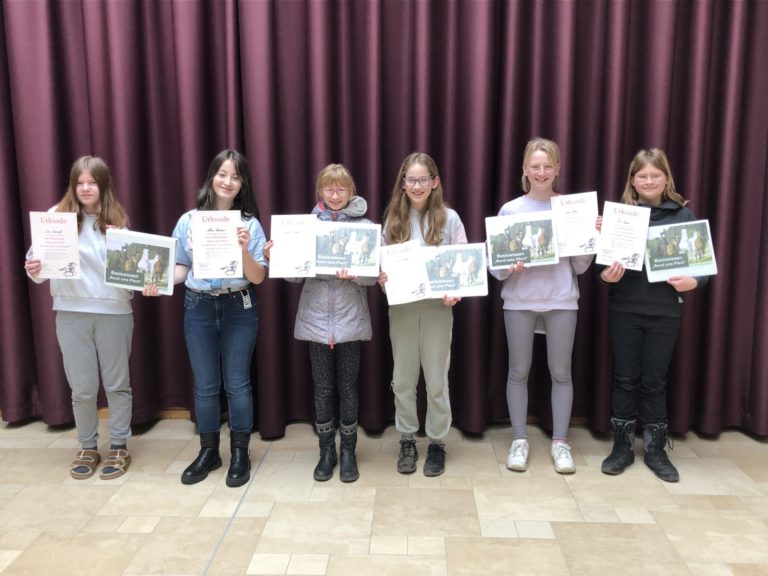 Ihr umfassendes Theoriewissen zu Pferdepflege und Pferdesprache hat die Reitgruppe I der Mittelschule Waldsassen nach Abschluss der Praxiseinheiten in einer Gruppenprüfung eindrucksvoll unter Beweis gestellt. Wir gratulieren unseren tollen „Pferdemädels“…