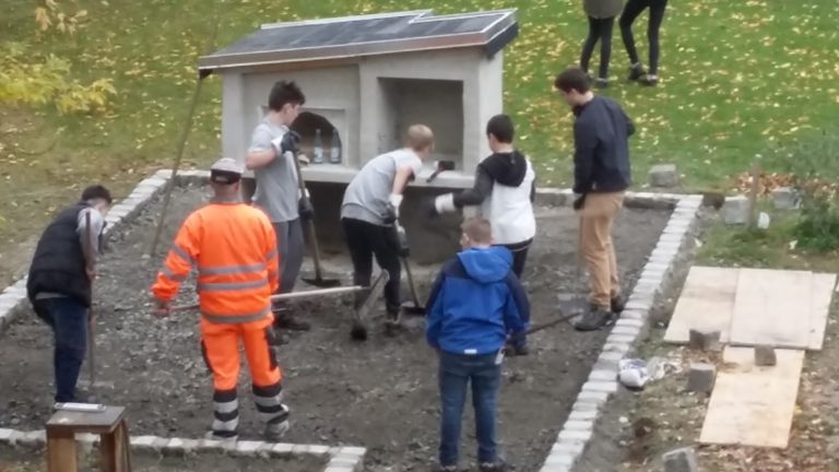 „Wir machen das!“ Mit großzügiger Unterstützung der Firma Kassecker und dem gleichnamigen Projekt der Bayerischen Bauwirtschaft pflasterten die Schüler der 8 GTK den Platz um den neu entstandenen Backofen. An…